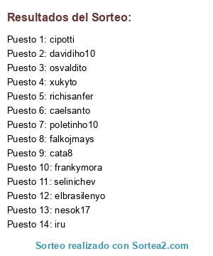 Resultados del sorteo: