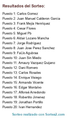 Lista de participantes: Robertito Jimenez, Edgar Montalvo, Carlos Rosales, Jonathan Portillo, Juan Jose Perez Sanchez, Enrique Visiego, Aldair Lozano Mancha, Juan Sin Miedo, Alfonsé Arredondo, Carlos Gomez, Amaury Vazquez Quijano, Juan Manuel Calderon Garcia, Armando Vicente, FaLlo Agubraa, Cesar Flores, Frank Mejía Henríquez, Dani Romero, Jorge Rodríguez, Ivan Hernandez, Miguel Pb.