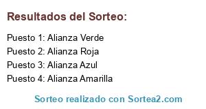 Lista de participantes: Alianza Roja, Alianza Amarilla, Alianza Verde, Alianza Azul.