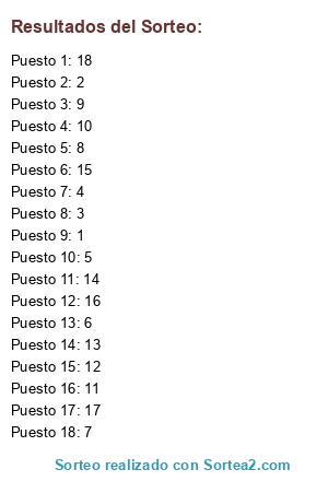Lista de participantes: 1, 2, 3, 4, 5, 6, 7, 8, 9, 10, 11, 12, 13, 14, 15, 16, 17, 18.