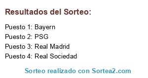 Lista de participantes: Real Sociedad, Real Madrid, PSG, Bayern.