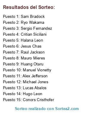Lista de participantes: Sam Bradock (2 participaciones), Ryo Wakama, Michael Jones, Hugo Leon, Huang Otaru (2 participaciones), Manuel Vionetty, Raul Jackson (3 participaciones), Jesus Chas (4 participaciones), Mauro Mieres (5 participaciones), Alex Jefferson (2 participaciones), Halana Leon (4 participaciones), Critian Siciliani, Conors Cristhofer, Sergio Fernandez (5 participaciones), Lucas Abalos (2 participaciones), Lucas Abalos.