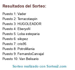 Lista de participantes: HibrYd, Stig369, Vader, hugoleador, Franco Falcon S, Pedrokus, Teeteto, Van Belisario, Yuux, Vladimir Ortiz de Zarate, Juan Carrasco, Mr. Schuffe, PotroMania, silopez, Terracotaspin, AlejoSilva, ganbre, jtcorthorn, locura, Fulgors.