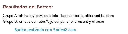 Lista de participantes: on vas cametes?, aldis and tractors, cala teta, Tap i ampolla, je sui paris, oh happy gay, el croisant y el xuxu.