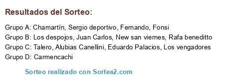 Lista de participantes: Eduardo Palacios, Carmencachi, Juan Carlos, Alubias Canellini, Chamartín, Fonsi, Fernando, Sergio deportivo, Talero, New san viernes, Rafa beneditto, Los despojos, Los vengadores.