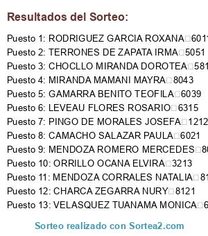 Resultados del sorteo: