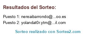Lista de participantes: @marijosecg3, @diegomorc, @Mluisa-mawy, @Pasedi, @cibertara, @luisalvsan, @mgsrina, @beutxi7, @Yolmonedero, @luzsan, pisedimarien1968@.com, paulafdiz@yahoo, @martacgd, @yolandat0r.ytm, @maria, @esther_almagro, @leticiagay, palvareztejedor@gmail, @begnc, @fannyvd123, @borja.iglesiasm, @bmarlo23, @natalia.vedi, @sara241170, @pnerea, @natideluc, @paularod74, @rbergazo, @jessilucia2320, @cristina.garcimartin, @gemaoch, @nereaibarrondo, @raquelgilgo, @Lorenteb, @beita.ap, @Laura18195, @sonianavarro74, @Raquel_navarr52, @pablonsog, @silvd2, @vanes_sa23, @Gozaez, @raqueldetomas, @carola2895, @netjiruiz, @ecmoron, @ingrid24ka, @Demeyeli, @g-rey, @mconde, @susakik84, @Pekota04, @moni_clasca, @esther_rodriguez, @cdc0, @soniafdezcaro, @anacutillas, @valmagro71, Mperez@siete-estrellas, @carolina22laura, @Beaillescas, @nicea79, @danzarte-nr, @maria20011974, @calabrya, @olgarauzo, @Ondina2009, @heavylandia2, @patriciaalcobendas, @juananmendo, @gema.morales72, @amartinezlujan, @litterator12, @soniass1977, @angelfernandezserrano, @inexdr, @Nuriacornejo1, @teleco98, @sonimr, @krol_jasso, @Numaro77, @Mamenberzal, @inesainh, tanakumi@Hotmail. Com, @maruganm, @bettyboopluxi, @yprietolapaz, @esther.ramirorios, @kafkiano, @mamen_simal, @mmarotoperez.