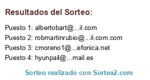 Lista de participantes: @teter_76, @ivana1975, @Ana.fernandez.alz, @tutoragemma, @victor_manuelcalvillo, @tatianafr, @Rociopoloenriquez, @anixsa, @Albasandiego, @vancs7, @fabiolalavezzari, @albertobart, @noke95, @paularod74, @BPALOMERO, @indiaka75, @trizuca, @danieleafrances, @sergiotejerored, @nereaibarrondo, @kristhina76, @Acristearodica, @silviadelafuente74, @robmartinrubio, @claraulvb, @margut, @javirulo2001, @micohemi, @martacgd, @npilar2001, @Ana_rosales86, @gwentroadec, @cdc0, @cmoreno1, @lomorales, @jessicaventosa, @oddryhg, @montse_gomez, @j_gabriel_lozano, @Irene5557, @M.brandani, @a.lopez.martin, @alm81.android, @paki_paris, @hyunpail, @maria20011974, @adegarma, @beatrizpp, @mturienc, @soniagon13, @balseronio, @naiaraimaz, @gmara-18, @anittarr.