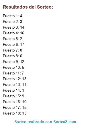 Resultados del sorteo: