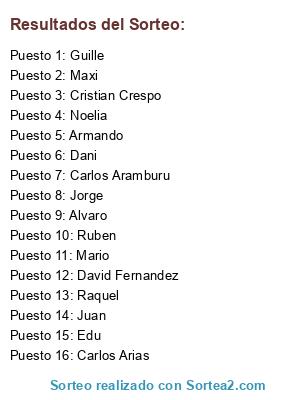 Resultados del sorteo: