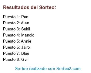 Lista de participantes: Gvi, Manolo, Annie, Pan, Blue, Alan, Sukii, Jairo.