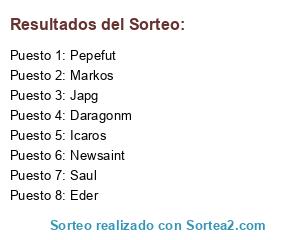 Lista de participantes: Newsaint, Eder, Saul, Markos, Icaros, Pepefut, Daragonm, Japg.
