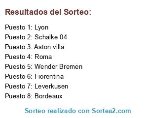 Lista de participantes: Nosfher (Everton), Choko (Sevilla), Jaime (Fiorentina), Salvadorsantos (Villareal), MValles (Deportivo La Coruña), Rodoa (Wender Bremen), Saul (Ajax), Skiller89 (Valencia).
