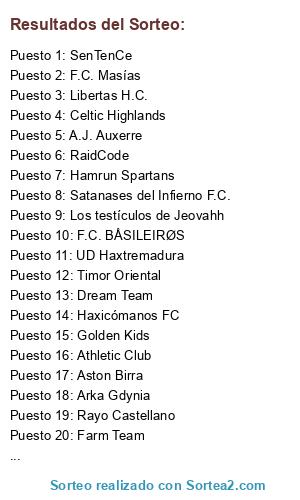 Lista de participantes: A.J. Auxerre, Ajax Ámsterdam H.C., Arka Gdynia, Aston Birra, Athletic Club, Calce Team, Celtic Highlands, Dream Team, Drink Team, Farm Team, F.C. BÅSILEIRØS, F.C. Masías, F.C. Mercadona, Garrapiñados, Golden Kids, Hamrun Spartans, Haxicómanos FC, Iron Thunders, Libertas H.C., Legionarios F.C., Los testículos de Jeovahh, Philadelphia SeventyMankers, RaidCode, Rayo Castellano, Real Magics Z, Real Sporting Valencià, Satanases del Infierno F.C., SenTenCe, Timor Oriental, UD Haxtremadura.