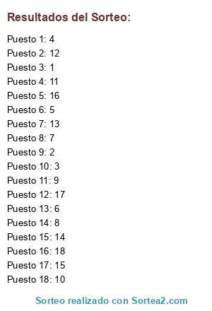 Resultados del sorteo: