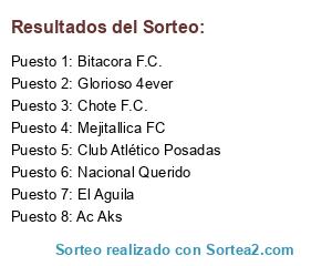 Lista de participantes: Ac Aks, Glorioso 4ever, Nacional Querido, Chote F.C., Bitacora F.C., Club Atlético Posadas, El Aguila, Mejitallica FC.
