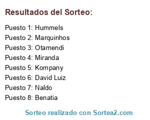 Lista de participantes: Miranda, Otamendi, Kompany, Marquinhos, Benatia, Hummels, David Luiz, Naldo.