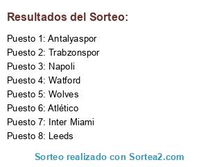 Lista de participantes: Watford, Inter Miami, Antalyaspor, Leeds, Napoli, Trabzonspor, Atlético, Wolves.