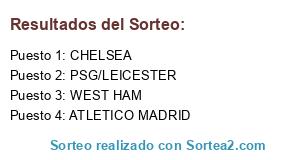 Lista de participantes: WEST HAM, CHELSEA, ATLETICO MADRID, PSG/LEICESTER.