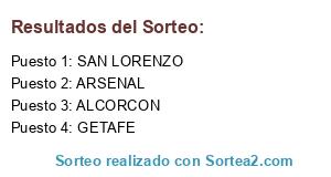 Lista de participantes: SAN LORENZO, GETAFE, ARSENAL, ALCORCON.