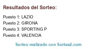 Lista de participantes: LAZIO, VALENCIA, SPORTING P, GIRONA.