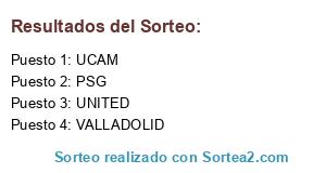 Lista de participantes: PSG, UNITED, VALLADOLID, UCAM.