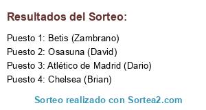 Lista de participantes: Betis (Zambrano), Atlético de Madrid (Dario), Osasuna (David), Chelsea (Brian).