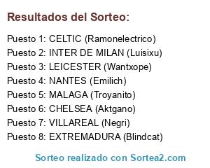Lista de participantes: VILLAREAL, VALENCIA, TOTTENHAM, LAS PALMAS, EVERTON, MILAN, BESIKTAS, CORDOBA.