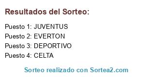 Lista de participantes: DEPORTIVO, JUVENTUS, CELTA, EVERTON.