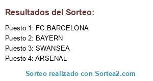 Lista de participantes: SWANSEA, FC.BARCELONA, ARSENAL, BAYERN.