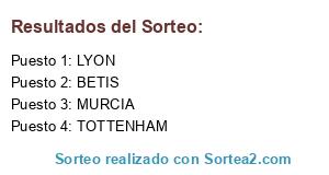 Lista de participantes: BETIS, TOTTENHAM, MURCIA, LYON.