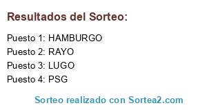 Lista de participantes: HAMBURGO, RAYO, LUGO, PSG.