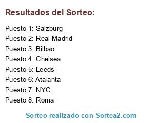 Lista de participantes: Roma, Leeds, Bilbao, Atalanta, NYC, Salzburg, Real Madrid, Chelsea.
