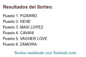 Lista de participantes: MAXI LOPEZ, ZAMORA, CAVANI, PIZARRO, VAGNER LOVE, NENE.