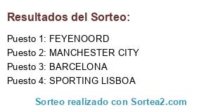 Lista de participantes: SPORTING LISBOA, BARCELONA, FEYENOORD, MANCHESTER CITY.