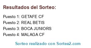 Lista de participantes: REAL BETIS, BOCA JUNIORS, MALAGA CF, GETAFE CF.