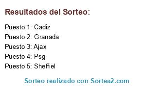 Lista de participantes: Cadiz, Sheffiel, Ajax, Granada, Psg.