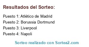 Lista de participantes: Liverpool, Atlético de Madrid, Napoli, Borussia Dortmund.