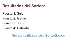 Lista de participantes: Gamo, Delajeta, Jordi, Suly.