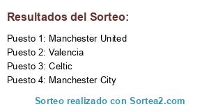 Lista de participantes: Manchester City, Celtic, Manchester United, Valencia.