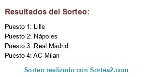 Lista de participantes: Nápoles, Real Madrid, AC Milan, Lille.
