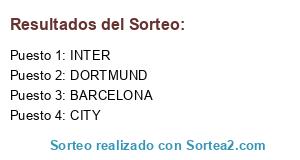 Lista de participantes: BARCELONA, DORTMUND, INTER, CITY.