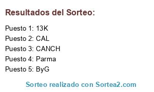 Lista de participantes: 13K, ByG, CAL, CANCH, Parma.