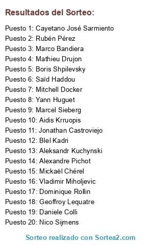 Lista de participantes: Mitchell Docker, Daniele Colli, Boris Shpilevsky, Dominique Rollin, Rubén Pérez, Mathieu Drujon, Saïd Haddou, Aidis Krruopis, Aleksandr Kuchynski, Blel Kadri, Geoffroy Lequatre, Cayetano José Sarmiento, Jonathan Castroviejo, Mickaël Chérel, Alexandre Pichot, Marcel Sieberg, Marco Bandiera, Yann Huguet, Nico Sijmens, Vladimir Miholjevic.