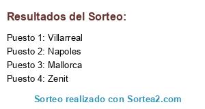 Lista de participantes: Napoles, Zenit, Mallorca, Villarreal.