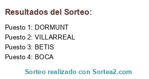 Lista de participantes: BOCA, BETIS, DORMUNT, VILLARREAL.