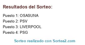 Lista de participantes: PSV, LIVERPOOL, PSG, OSASUNA.