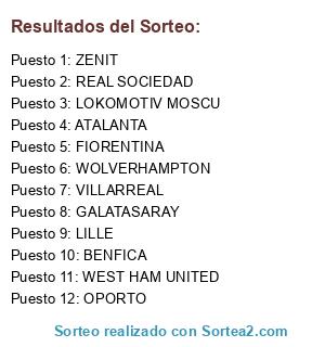 Resultados del sorteo:
