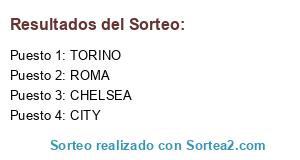 Lista de participantes: TORINO, ROMA, CHELSEA, CITY.