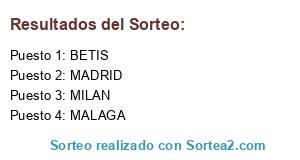 Lista de participantes: MILAN, MALAGA, MADRID, BETIS.